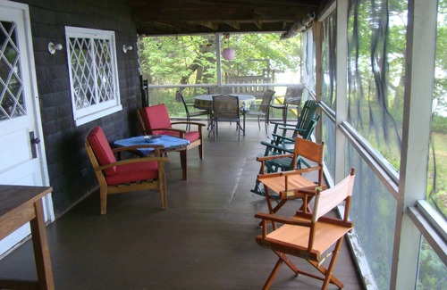 This is the lake cottage your grandmother visited during her childhood. Charming, original 1920 features. Big remodeled kitchen (new stove/oven) and big living room for family reunions and guests. Sleeps 9 in comfort; it has often slept 20 with air mattresses and sleeping bags. Porch overlooks Lake Wononscopomuc -- deepest lake in Connecticut. Close to train to New York and recreation facilities, in the heart of the New England independent school world and just right for the family's May and June, end of school and graduation weekends. Adjacent to Hotchkiss School and Interlaken Inn. Great fishing, hiking (including access to Appalachian Trail), antiques, golf, tennis, fall foliage, summer theater, dance and art. Superb porch sitting. Wood stove, fire-place, and electric heaters deal with extra-cool evenings or mornings. Outdoor gas grill supplements 2 indoor ovens and stove. WiFi, TV, phone.