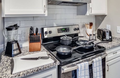 step inside to a space designed for comfort and convenience The living area lets you relax with a Smart TV, Retro Video Game Console, Streaming Services, and Cable Channels, perfect for movie nights or gaming sessions. A dedicated dining area is ideal for getting started on work or setting the stage for memorable meals prepared in a kitchen stocked with all the essentials. The bedrooms are your personal retreat, a master and 2ndry bedroom complete with king-sized beds, a private bathroom entrance, and ceiling fans for ultimate comfort. A third bedroom with two twin-XL (same length as King bed and half the width) sized beds and a large walk-in closet.