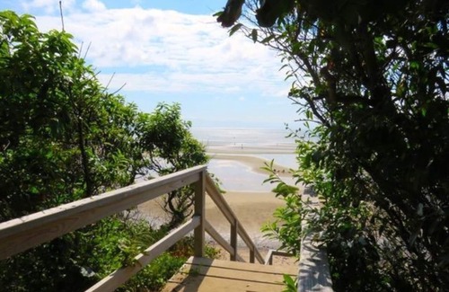 Deeded Beach Rights to Private stairs to Cape Cod Bay! Located down a quiet sandy street and just a short walk (3-4 minutes walk) down a sandy path to private beach stairs this lovely bayside home is the perfect place to spend your summer! Plenty of room for everyone (sleeps six) and almost an acre of level grassy yard to enjoy after a long day at the beach. The home has recent improvements, with updated plumbing and electrical, hardwood floors, newer deck and outdoor shower. The master bedroom has a walk in closet and private bath with easy access to the first floor laundry room. Don't miss this wonderful bay side rental!.