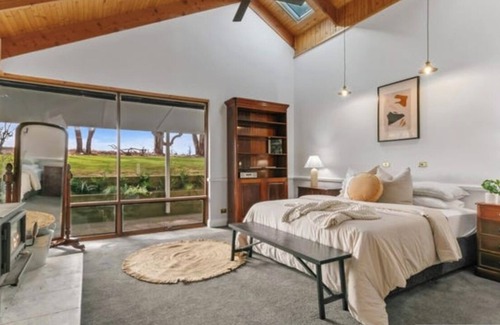 yet the views are yours from all angles, in front of either new combustion fireplaces-one warming the secluded master wing - and the other ensuring the living areas are comfortable in winter As dusk casts a glow off the new marble-topped splashbacks, the kitchen transitions to a well-appointed butler's wing. Down the hall, the laundry, guest powder room, and guest bathroom - serving three more double bedrooms - are enhanced by new stone-effect tiles and premium gold fixtures.