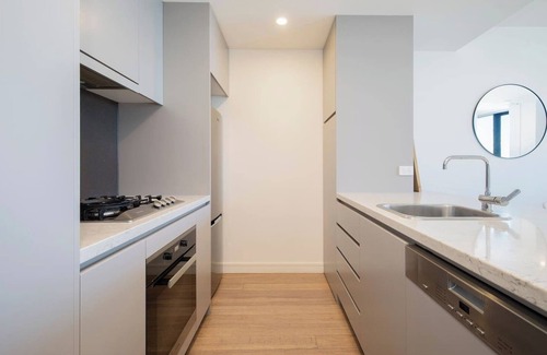discover a coastal escape in this impeccably presented one-bedroom apartment Sandy wood floors lead you from the modern kitchen through the combined dining and living area to a breathtaking balcony with sweeping ocean views.