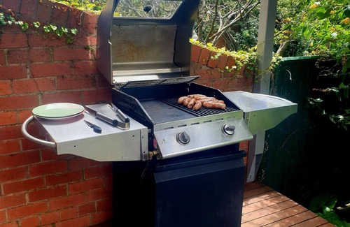 this 2 storey 3-bedroom light and sunny house has a large backyard and outside entertainment area with bbq, full kitchen and laundry, smart tv, air conditioning and free parking You will think you are home!.
