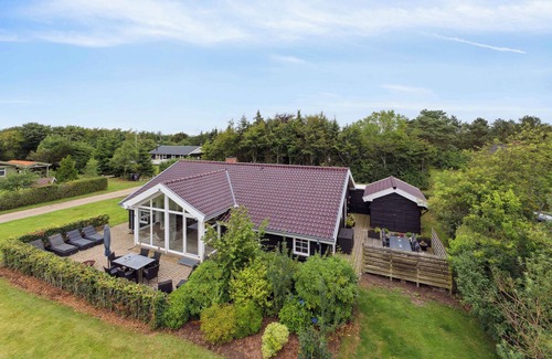 close to ringkøbing fjord lies this lovely wooden house, which welcomes you to a wonderful holiday The interior is bright with many windows and beautiful wooden details, which create a cozy atmosphere inside. The rooms make a good impression and invite you to many relaxing or sociable hours. Spend cozy evenings with board games and light the wood-burning stove after a cool day with a walk in the fresh wind.