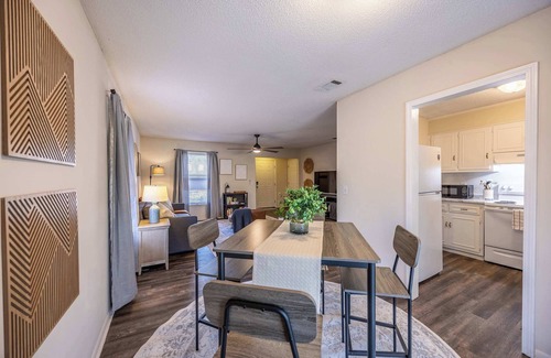 tucked away in a peaceful neighborhood, this charming 2-bedroom, 2-bath duplex is the perfect home away from home for families, business travelers, and visitors to georgia southern university Thoughtfully designed with comfort and convenience in mind, this inviting retreat features a modern yet cozy ambiance, a screened-in patio, a small fenced-in yard, and a fully stocked kitchen. Whether you're here for a game at Mill Creek Park, a college visit, or just a relaxing getaway, this home offers the ideal blend of privacy, style, and accessibility.