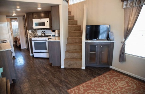 a cozy retreat for up to 6, with a queen in the bedroom, queen loft, and pull-out sofa Enjoy a full kitchen, climate control, Wi-Fi, and a porch for desert sunsets. Extra parking for oversized vehicles is first-come, first-served. Minutes from downtown Moab and a quick drive to national parks, this is your launchpad for adventure. pets welcome!