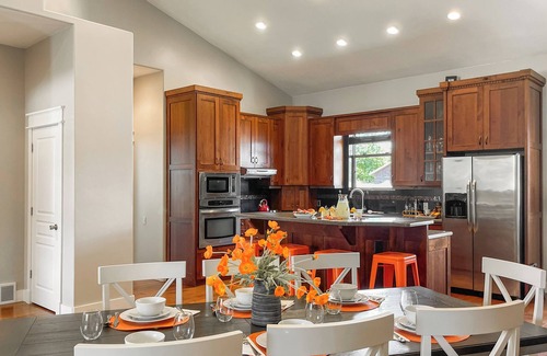 Views, Proximity and Amenities. Imagine watching the sunset melt over Mount Timpanogos while soaking in the hot tub or roasting marshmallows (we supply a smores kit) over the firepit. Proximity to ski resorts (15mins to Deer Valley. 25mins to Sundance or PC), 15mins to Soldier Hollow (XC Ski and Golf), Deer Creek and the Jordenelle Reservoirs, a game-packed living room and home theater, two kitchens, fully equipped with full sized fridges, pots, pans spices and more. Perfect for your group.