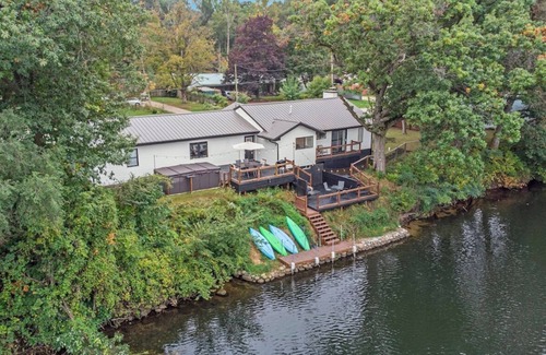 a true dream vacation destination! this spectacular riverfront home is on the banks of the st joe river with modern luxury and breathtaking natural beauty, your getaway promises an unforgettable experience for you and your group! has an enormous swimspa located on the back patio, while you soak or swim, soak in the breathtaking river views and watch the sunset! hosts 14 guests, everyone can enjoy their privacy while still sharing memorable moments together!