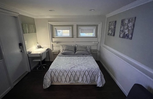 This is a beautiful spacious apartment, which is a studio. There is also a laundry room connected to it separately with a large washer dryer and a separate entrance. The studio has everything including full cable with DVR central air central heat all newly remodeled, toaster, coffee maker, oven stove, top full-size fridge, six seater dining table large flatscreen TV that tilts 180° to watch from bed top-of-the-line linens and new “Purple” mattress.