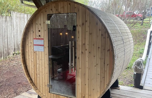 and if that's not enough....after your river adventures you can get toasty in our big barrel sauna, and don't worry about the towels......we got that too! If you really need to work, we do have quiet areas, a desk, and good Wi-Fi too.