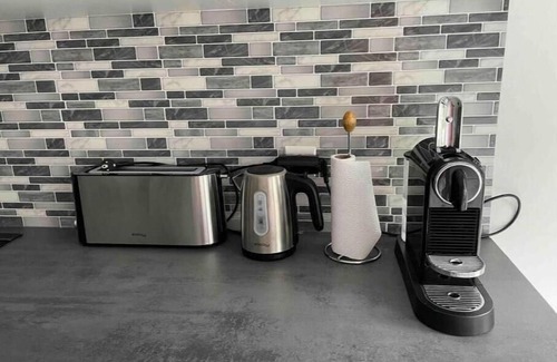 the kitchen is equipped with an oven, a refrigerator, and a dishwasher, as well as a coffee maker, an electric kettle, and a microwave Connect to the free WiFi, or get cozy in front of the TV. And you won't have to pack extra clothes, because you'll also have access to laundry facilities.