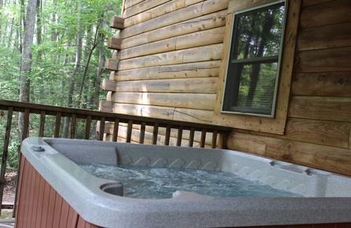this cabin features a gas fireplace, tv with the basic dish network package, dvd, a spacious covered front porch deck with private hot tub and gas grill, dishwasher, washer/dryer and furnished with central heating and cooling