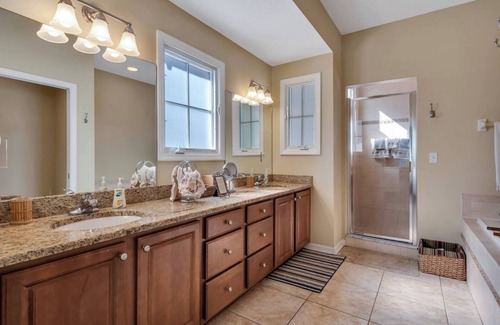 with the master bedroom on the ground floor and its adjoining bathroom, it is ideal for those who do not want to climb stairs The Master bedroom offers a queen bed and a satellite TV. The master bath provides a large jetted tub and a separate walk-in shower.