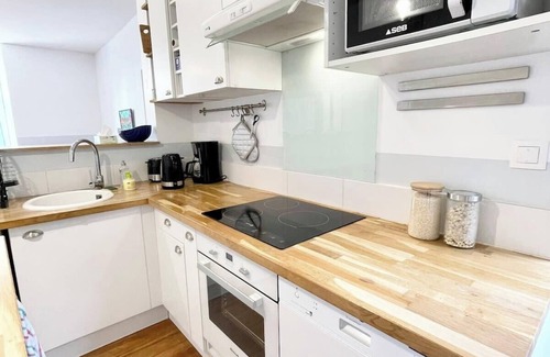 the flat has a washing machine, dishwasher, conventional oven and microwave, conventional coffee maker, toaster, fridge, kettle and induction hob