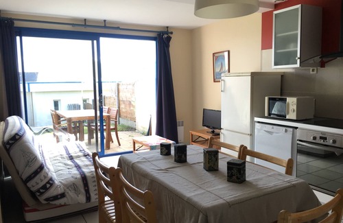 villa t3 ground floor with terrace and garden, for 4 to 6 people Heated year and shared, free wireless internet access, sandy beach and coastal path 80m. Private parking. Playground for children. Facing south west. Quiet and rest assured.