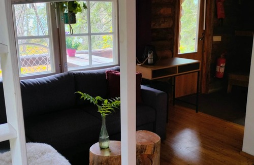 as you step into our cabin you will be greeted by a warm and inviting atmosphere The cozy sofa bed is perfect for two people, while the extra loft bed offers a cozy place for your little one. Unwind and let yourself be enveloped in comfort by the crackling sound of the traditional Finnish fireplace. We provide wood for the first night and additional firewood can be arranged for a small fee so that the cozy atmosphere never fades.