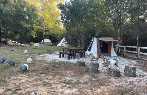 ****we’re a farmher owned micro-farm in northeastern tallahassee within a few miles from i-10 The farm is a back-to-nature wellness glamping facility, in the city. We believe in enjoying the abundance of nature, with a few creature comforts.THE FARM- The farm started in the late 1800’s and has remained untouched since 2012, when the family farmhouse burnt. The farm's infrastructure is still present today, and we’ve started to uncover it after 20+ years. Purchased in 2023, Our new farm will provide a place to learn about sustainability as we practice being a good steward of the land. The backbone of the farm. We aim to serve the growing interest in ECOtourism & AGRItourism, by educating the public with farm tours.We will practice *Permaculture * Food forest *Low carbon footprint *Regenerative Farming & Rotational Grazing with *HERITAGE animals.Most of our heritage animals are “MINI” and part of our traveling therapy program (zoo). The farm animals aid in the conservation efforts and create awareness of historic farm animals going EXTINCT, due to industry practices. (livestockconservancy.com)Every acre of the farm is a unique experience and our “special places” create lasting memories. Our favorite is “The Manger”. We plan to restore the old cattle shoot, holding pens and “manger” structure. In the future it will be a historical therapy petting zoo. We love our animals and they all serve multiple purposes on the farm.The farm’s one of the last larger parcels, undeveloped, in the area. Two miles from I-10 interchange, NEW Tractor Supply, Wendys, Amazon, and a new Gas station. Founded on the love of animals and a passion for sustainability, we remain committed to compassionate practices and the most natural care of our land and animals as possible. As stewards of the land and herd, we believe we have a responsibility to share nature's blessings. We offer several agritourism opportunities on the farm, from farm stays to day visits. It is our goal to create a space where our visitors can have fun and learn about the animals who share that space. We also strive to serve as a valuable resource for first time goat owners. To support that endeavor, we sell chicken eggs, specialty cottage goods, Our goal is to provide a perfect balance of peaceful connection with self and nature coupled with a connection to community.