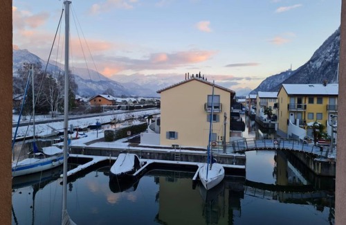 Large resort "Residenz Marina". On the outskirts, 300 m from the centre of Le Bouveret, in a quiet, sunny position, 200 m from the lake, 50 m from the canal. In the house: central heating system. Shop, grocery 800 m, restaurant, bakery 500 m, bicycle rental 190 m, bus stop "Bouveret village" 1.2 km, railway station "Le Bouveret" 300 m, pebble beach 200 m, outdoor swimming pool 300 m, indoor swimming pool 7.2 km, thermal baths 30 km, public bathing area 300 m, bathing lake "Léman" 300 m. Sports harbour 200 m, golf course (18 hole) 15 km, surf school 200 m, tennis, minigolf 12 km, walking paths from the house 300 m, mountain railway 15 km, slopes 18 km, ski school 18 km, children's ski school 35 km, sled run 29 km, cross country ski track 35 km, ice rink 18 km. Nearby attractions: Parc Aventure 17 km, Château Chillon / Fort de Chillon, Swiss Vapeur Parc 100 m, Aqua Parc 500 m. Well-known ski regions can easily be reached: Les Portes du Soleil 18 km, Villars 35 km, Leysin 31 km. Well-known lakes can easily be reached: Lac Léman. Hiking paths: Portes du Soleil. The keys‘ handover takes place by the agency Interhome in Bouveret. Neighbourhood highly sensitive to noise. Quietness and good behaviour expected.