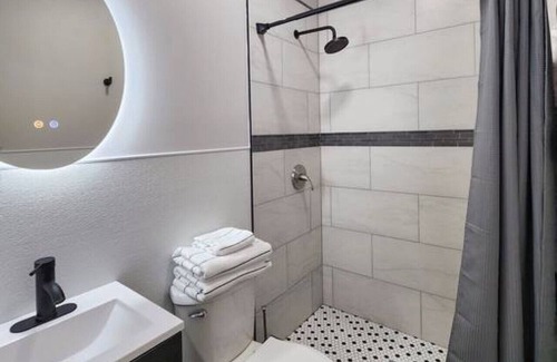 Enjoy air conditioned rooms, clean modern bathroom, and spend time with your significant other or family watching your favorite shows on Disney+, Netflix and more. Make your meals and enjoy them on the beautiful, wooden dining.