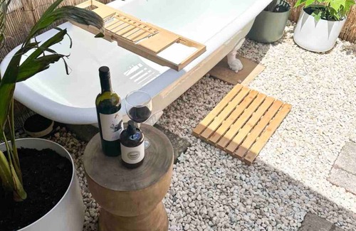 directly off the dining room is a small private courtyard with an outdoor bath For the ultimate experience we highly recommend bathing under the stars in our antique clawfoot bath. a truly magical experience!
