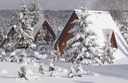 Holiday village "Tennenbronn". Above Tennenbronn, 2 km from the centre. For shared use: table tennis, children's playground. In the complex: reception, restaurant, WiFi, central heating system, washing machine (extra), tumble dryer (for shared use, extra). Central parking spaces. Grocery 2 km, bus stop, railway station "St. Georgen" 10 km, outdoor swimming pool 500 m, indoor swimming pool 10 km. Golf course (18 hole) 15 km, walking paths from the house 100 m, ski lift 20 km, cross country ski track. Please note: the photograph shows a typical example. All houses/apartments are individually designed/furnished. Beginners ski lift and toboggan run 300 m. The holiday village is located on the sunny side of an 800-meter Black Forest plateau, it is traffic-calmed and has a cafe-restaurant. Internet (Wireless LAN) is in most semi-detached houses as well as in gable roof and A-frame houses available free of charge. PLEASE NOTE: Arrivals are not possible on Sundays and public holidays.