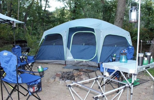 this tentrr site is outfitted with an extensive range of coleman camping gear Unwind in style with a large cooler, grill, shade canopy, lanterns, speaker, camp chairs, wagon, and more! (Campers must bring their own pot/skillet, cooking/eating utensils and plates.)