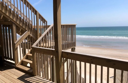 the views from the terrapin's two-level oceanfront deck are equally impressive, with the surf city pier to the south and north topsail beach to the north The pictures have been updated since Florence decided to do some remodeling! Outdoor dining tables and chairs on the upper deck let you enjoy a meal or drinks in the sun or under the stars, and the lower deck is available to lounge in the shade while looking out over the ocean. Be on the beach in moments with your private access, which has a shower for after your swim.