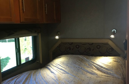 Take in the Okanagan in the comfort of The Adventure Awaits. 32 cents a kilometre. Our 25’ long motor home is in excellent condition inside and out. Sleeps 6, rear corner queen bed and queen bed above cab, table folds down for kids double. Solar thermo-pane windows, insulated plumbing and tanks, insulated walls; A/C; furnace; 3 piece bathroom; 3 burner stove/oven; double sink; microwave; fridge with top freezer; exterior shower, and power awning.