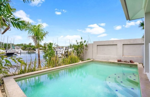 step outside to your exclusive waterfront paradise The expansive undercover patio invites year-round entertaining with serene views of the marina, while the private pool offers the perfect place to unwind under the tropical sky. Secure parking is available in the garage and on the driveway, providing convenience and peace of mind throughout your stay.