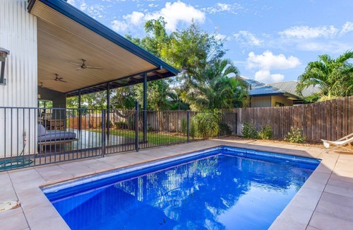 outside, you’ll find a private backyard sanctuary with a lovely lawn, a below-ground pool, and a sprawling deck area complete with a bbq and comfortable seating Whether you’re cooling off in the pool, lounging on the deck, or enjoying an alfresco meal, this outdoor area offers the perfect space to enjoy Broome’s beautiful weather. A double carport provides convenient, undercover parking.