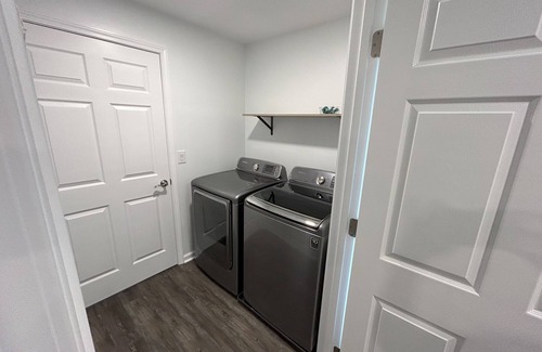 * washer and dryer with laundry pods and dryer sheets We also have a ironing board and iron available. (The laundry room is shared with the unit next door.)
