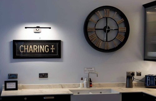 at the heart of the home is an expansive open-plan kitchen, large ercol antique dining table, and living area — a perfect space for entertaining or relaxing The kitchen is fully equipped with modern appliances, stone worktops, and ample seating, so, if you're planning to cook a Sunday roast for the whole family, the kitchen has everything you might need. The adjoining living area is complete with plush seating and a large smart TV, ideal for family movie nights or entertaining guests. The property also benefits from a dedicated utility room complete with a washer and dryer, providing added convenience for longer stays.