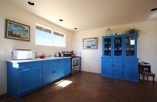 Relish the inspiring sunrises, breathtaking sunsets, awesome moon rises, and starry night sky from this special getaway cabin. Immerse yourself in nature, including Joshua trees, blooming cacti, and a unique rocky ridge line. Close to Joshua Tree Village. 15 minutes from the National Park entrance. Newly restored 50's cabin perfect for solo guests or couples. Beautiful hikes out the back door, or just stay in and re-center. perfect as a home base for exploring the area or as a creative retreat