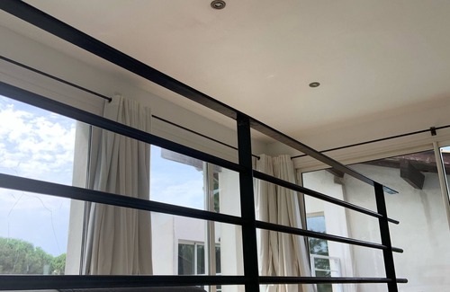 on the second floor: an independent studio, with shower, private toilet, all air conditioned; overlooking a private terrace The outside is green, and shaded, in a very pleasant setting, with a swimming pool and its equipment.