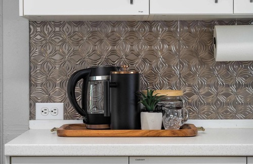 - stove, oven, microwave, coffee & tea station