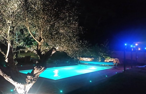 terraced and shady patio protected by a centenary oak tree Envision having a glass of local wine looking over the swimming-pool, the olive trees and the mountain.