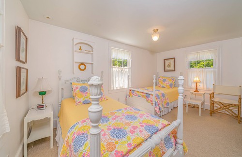 this 1908 farm house has been fully restored with all modern conveniences There are four bedrooms and four full bathrooms. The first floor has a fully equipped modern kitchen, living room with gas fireplace, dining room for eight, a bedroom with twin beds and private bath, and another full bath.