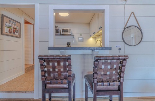 the crab shack is right at the water's edge and its cozy bedroom, dining area, galley kitchen and living room all face the water