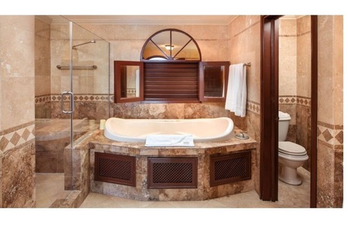 - the 2 private luxurious bathrooms with spacious wardrobe, a large dressing area, whirlpool tub, separate toilet room, separate spa shower with multiple shower heads and double vanity