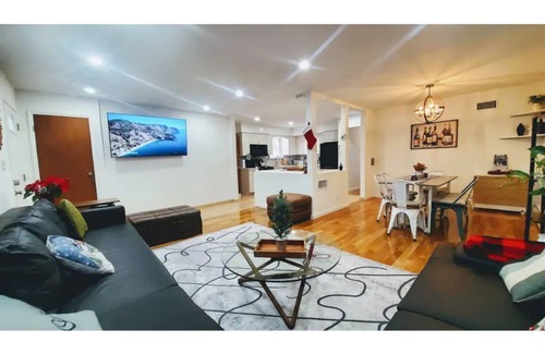 be the first guest to stay in this freshly remodeled solid 1970 semi-detached multi-family home with all new furniture, beds, and accessories you get: the 2nd floor; 3 bedrooms (bedroom #1-master with king bed and private bathroom, bedroom #2-queen bed, bedroom #3- full bed). For extra sleeping space we have a cozy queen size sofabed in living room. Private entrance, 1 car parking, hallway full bathroom, fully stocked kitchen, modular dining room, and very spacious living room.