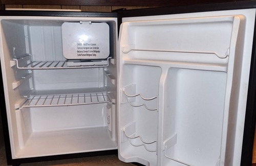 cabin # 6 is a one room cabin with two twin beds The bathroom has a walk-in shower. The kitchenette contains a mini fridge, microwave, coffee maker, double sinks, dishes, glasses, coffee mugs, utensils and a table and chairs for 2. There is no stove so no cooking indoors, please. There is a store/cafe within walking distance.