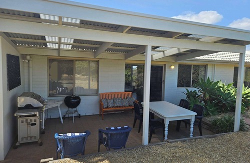this single storey home has a roomy living and dining area, four bedrooms, bathroom & laundry with a second toilet and a well-equipped kitchen Fully ducted R/C Air conditioning, TV, Chromecast, DVD, Football Table, Board games (all ages), Stereo, Microwave, Coffee Machine, Washing Machine, BBQ, Weber, Outdoor Furniture. Outside has a large covered and paved BBQ entertaining area facing the tranquil sand dunes. The yard is fully fenced and is perfect if you would like your furry friend to join you on your seaside holiday. A generous undercover carport offers protection for multiple vehicles. There is plenty of room for off street under cover parking of boats and trailers.