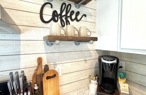 wake up to birdsong and sip coffee on the large covered porch — a guest favorite! featuring 3 bedrooms and 2 full baths, bedroom #1 has a queen bed and bedroom #2 has 3 twin beds (1 bed + 1 set of bunk beds), with a full bathroom right across the hall Separated by an open concept full kitchen with huge island, living and dining space, you will find bedroom 3. This master suite features a king size bed and huge spa like bathroom with large walk in shower, dual sinks and freestanding soaker tub.
