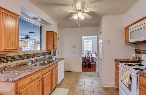 please note: there is an occupied cottage in the rear of the property This cottage in not included in the rental. Driveway is shared and each property has its own carport. The sunroom can get rather hot/cold depending on the season due to all the windows. We recommend keeping the door closed between the sunroom and the rest of the house. The fireplace is not available for use by guests.
