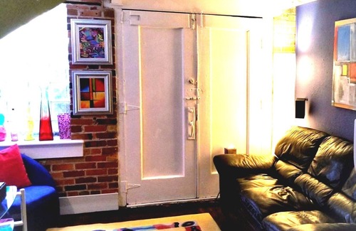 'the gallery' is a fabulous, designer decorated, two-story 'manhattan style loft' condo Beautiful exposed brick walls can be found in the living room, bedroom, and bathroom; all refinished hardwood floors; new contemporary Scandinavian furniture/furnishings; an expansive collection of modern art displayed in every room; and wonderful color throughout! 'Lots of style and energy' as one of our guests describes.