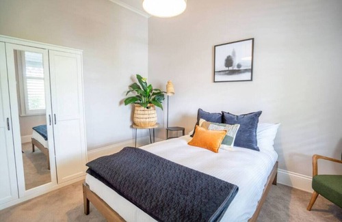 sleep easy within two double bedrooms, both presented with luxury linens for a good night’s sleep The first comes with built-in wardrobes for storing your belongings, while the second integrates charming character details and offers a dedicated workspace for those on a working holiday. The bathroom has been designed as a relaxing haven with a wet zone including a bathtub and rain shower, along with a separate toilet. Guests will also have access to a laundry space with a washing machine, iron and drying rack.