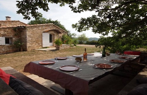 la garrigue is located in a very private environment It enjoys magnificent views of the hills and surrounding countryside, including the hilltop village of Montjustin. It has a large pool and is facing south. The property has easy access to the village of Céreste with all shops 3 km and activities of the Provençal culture.