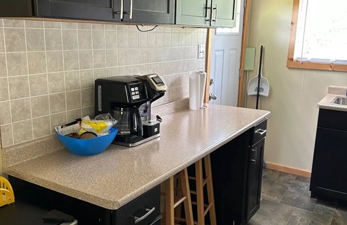 when you enter the cottage, there is a large open area with a large dining table The kitchen is recently renovated and include a Keurig compatible coffee maker. There are 2 mini bar in addition to the main fridge.