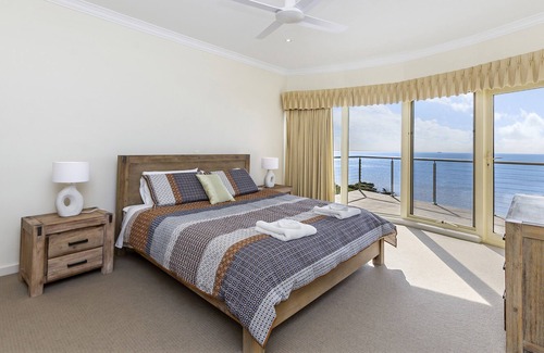 Built on the Portland cliff tops, the ground floor comprises of a laundry, third toilet and a large kitchen/dining/living area with floor-to-ceiling windows for stunning ocean views. A sliding glass door provides access to a deck also providing stunning ocean views. The upper level features three bedrooms, two single beds, one trundle, one queen bed and the master bedroom with king size bed, balcony, ensuite with spa bath and WIR. There is an electric blow-up bed if needed to sleep up to 8..