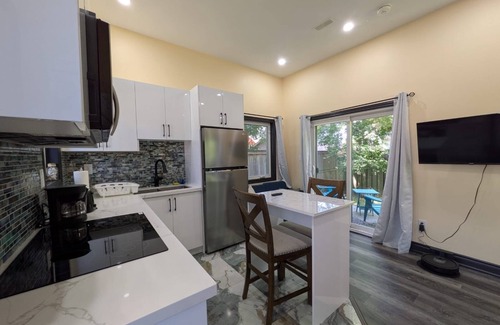 The Grassy Oasis is a garden suite located in the backyard of our home. It is a self-contained separate house of its own, which is fully separate from the main house. This tiny home features a king-size bed, a full kitchen, and a washroom with a fancy shower panel. A brand new construction, you will love the lush fresh grass and the trees around. You will also have access to a shared patio and the backyard. Best of all, you will be centrally located in downtown Brampton close to all amenities.Kindly note: We do allow pets for a nominal fee of $150/ pet/ stay of 28 days or less, paid cash or etransfer on arrival. Unauthorized pets and/ or guests will result in immediate cancellation with no refund. Also, note: this is a no smoking property, smoking inside the premises will result in immediate cancellation with no refund and a $500 fine. Furthermore, for our guests, ours, and our property’s safety we have outdoor security cameras/ recording devices in the following locations: One ring doorbell camera on the main house’s front door, one camera facing the side entrance of main house, one camera by the garage with a view of the entrance to The Rustic Barn (our other listing located in the basement of our main house), and the driveway, and one camera on the big tree overlooking the entrance and the sides of The Grassy Oasis..