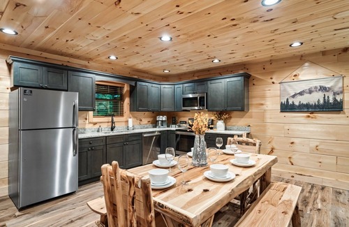 please be our guest! ole mountain cabin has everything you need to enjoy a weekend or week away with family & friends 3 Spacious Master Suite Bedrooms each with with King size beds, electric fireplaces, 50 in Smart Tvs and large ensuite bathrooms with granite counters. First floor welcomes you with a spacious & open living room with electric fireplace, 50 in TV, kitchen boasting granite countertops, stainless steel appliances & Coffee Bar. Head upstairs to find the 2 Additional Masters & Baths. The 2nd Bedroom has an attached full bath with shower/tub that is also available to the rec room/ game area. Queen sofa sleeper, and FULLY LOADED with fun, including a foosball, multiple arcade games and an Infinity Game Table, the latest in games (all the classic board games without all the pieces) & 75 In TV for movie nights. If this isn't enough there is a Multicade Arcade with all the classics such as Pac-Man, Donkey Kong, etc, along with a NFL Blitz, NBA Jam, Golden Tee, Ridge Racer, Street Fighter, and Mortal Kombat! Parking for 3-4 vehicles on this level oversized driveway. Enjoy a cup of coffee or some Tennessee Moonshine on one of the front porch rocking chairs, out on the covered back deck, in the new hot tub or down on the lower patio, aka the backyard oasis that was just completed, (June 2023) A few steps away to the creek. Having trouble deciding whether you want to stay closer to Pigeon Forge or Gatlinburg? Ole Mountain is situated perfectly, 15 minutes to downtown Gatlinburg or the Pigeon Forge Parkway, 10 minutes from Dollywood! No need to decide with this cabin, you can be close to everything! Additional photos coming once the backyard entertainment space is completed. We look forward to welcoming you.
